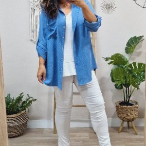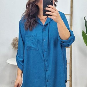 Camisa Larga Basic Azul Petroleo
