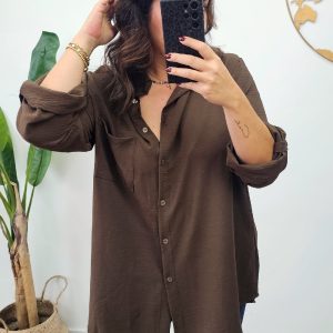 Camisa Larga Basic Marron