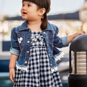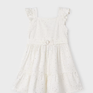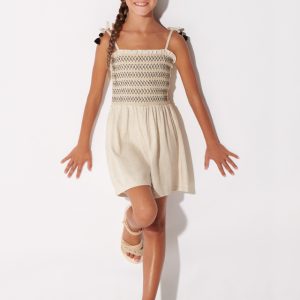 VESTIDO CON MOTIVO BORDADO Y LINO PARA BEBÉ