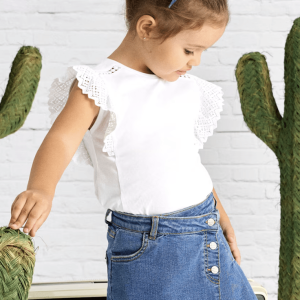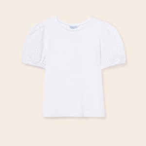 BLUSÓN MANGA CORTA PLUMETI CON BORDADO DE ALGODÓN PARA NIÑA