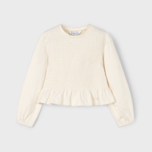 BLUSA NIDO DE ABEJA NIÑA ESTAMPADO DE FLORES.
