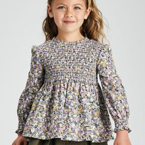 BLUSA NIDO DE ABEJA NIÑA ESTAMPADO DE FLORES.