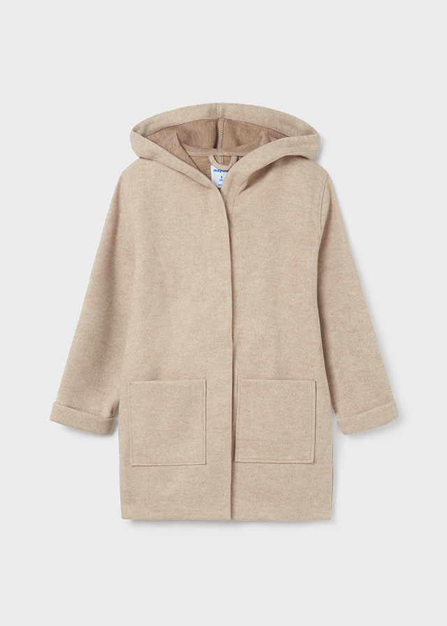 Abrigo de manga larga para chica. Modelo con capucha. Cierre con botones a presión ocultos que permitirán vestir la prenda con facilidad.