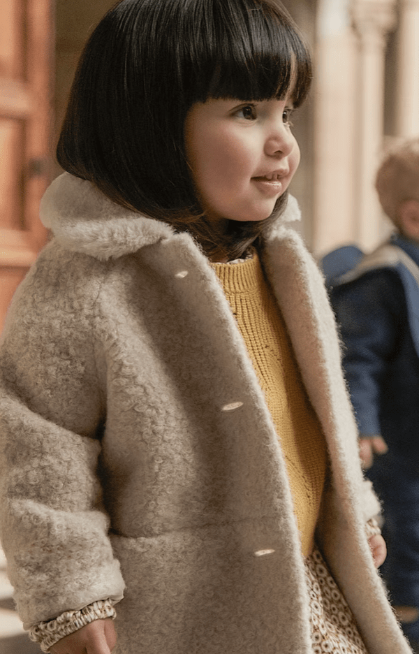 Abrigo de manga larga para bebé. Cuello de pelo. Cierre con botones en la parte delantera. Divertido exterior de rizo perfecto para sus looks más abrigados. Bolsillos funcionales en la parte delantera.
