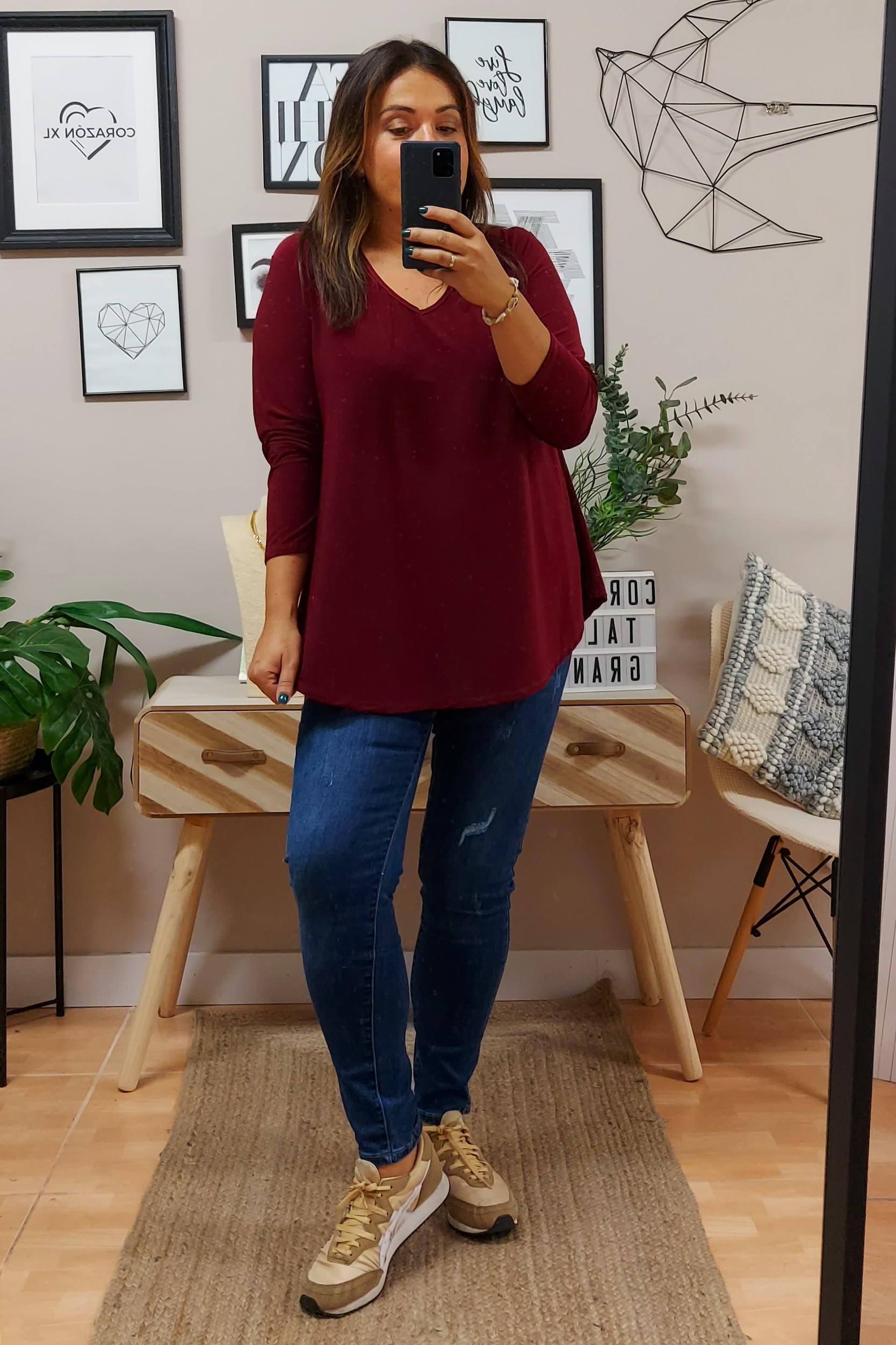 Top Armony Burdeos Manga. Blusas tallas grandes.