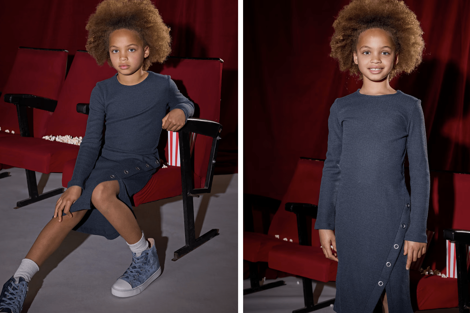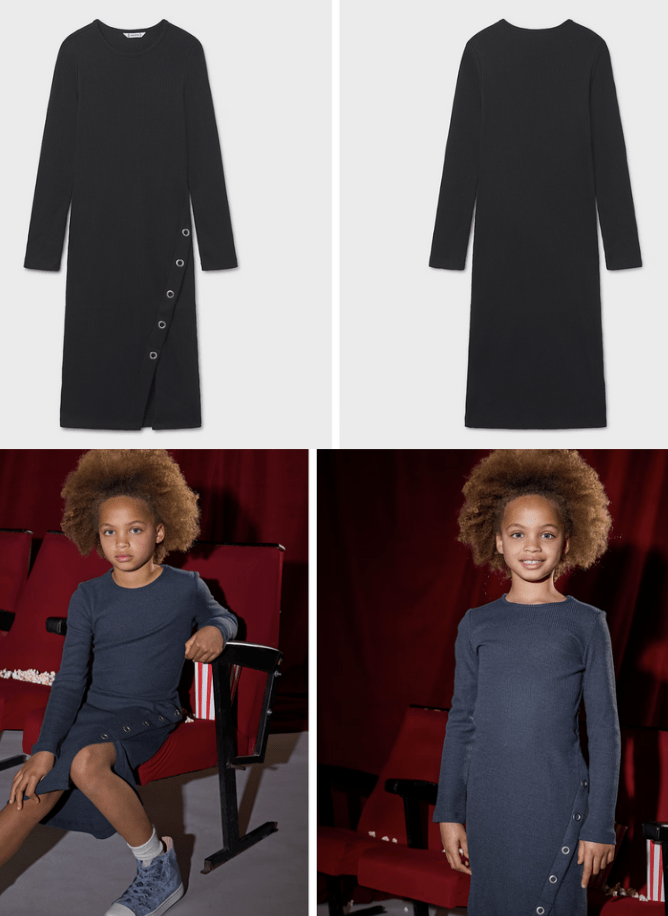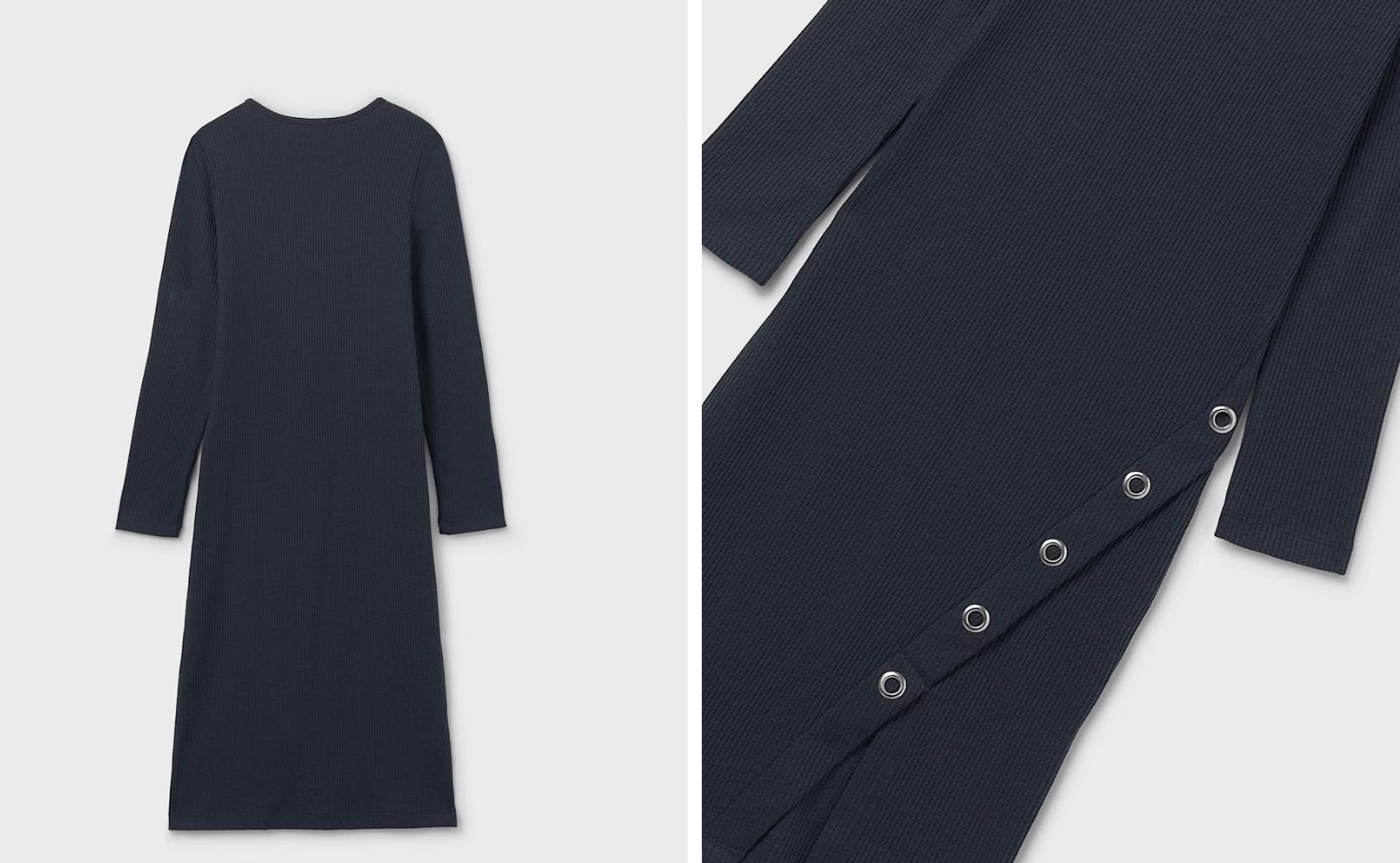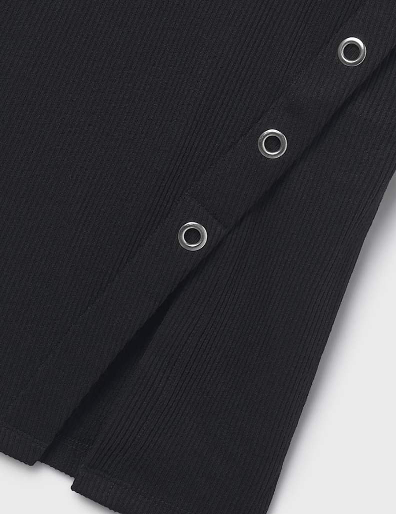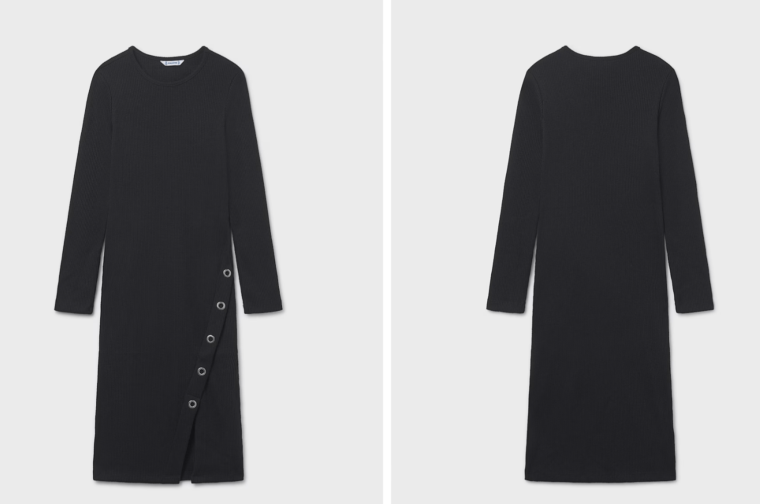 Vestido de manga larga para chica. Tejido de punto canalé. Elementos de adorno: aberturas de adorno.