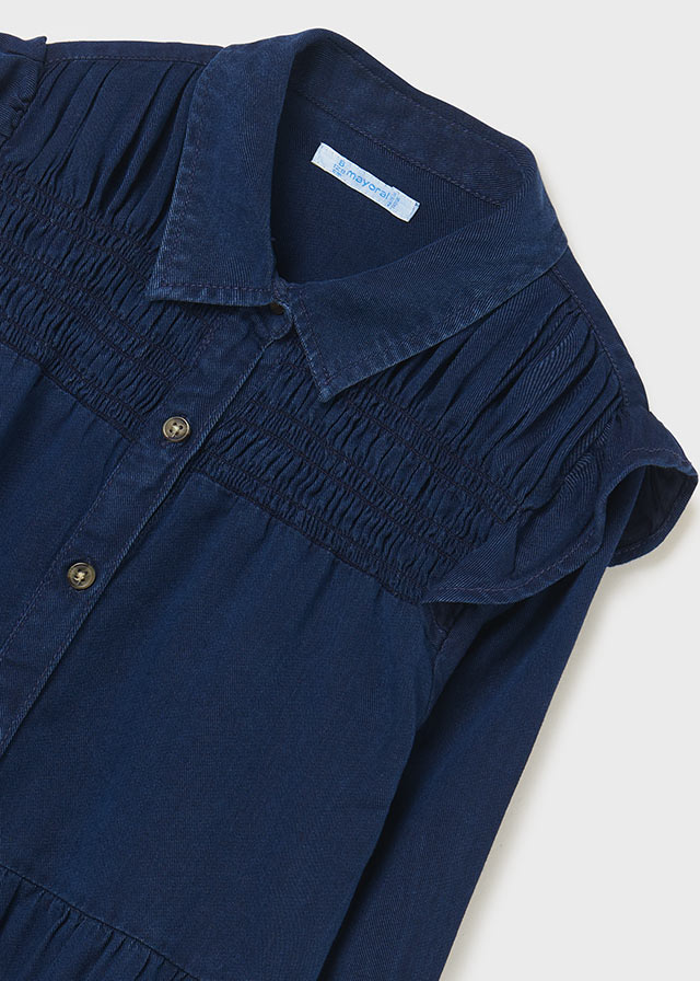 Vestido de manga larga para chica. Cuello camisero. Cierre con botones en la parte delantera.